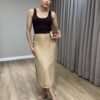 VESTIDO LONGO CANELADO CAFE