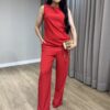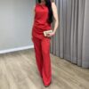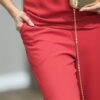 CALÇA VERMELHA RETA ALFAIATARIA, ZIPER E BOTÃO EMBUTIDOS